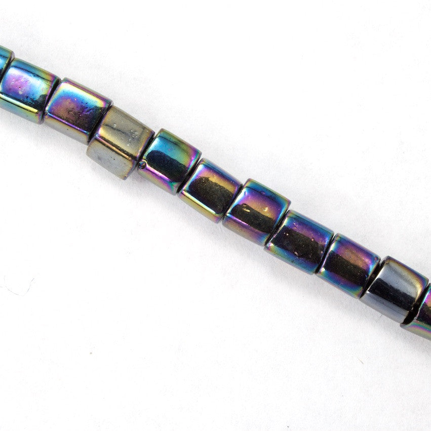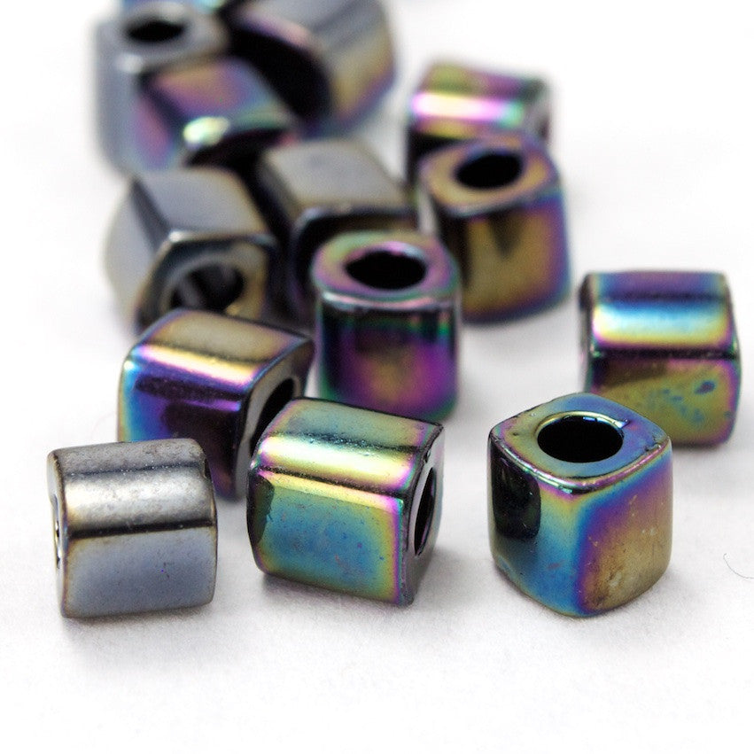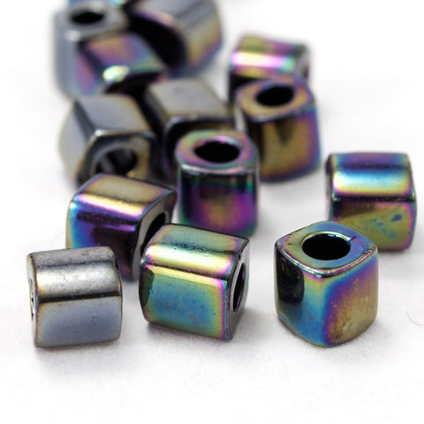 4mm metallic grey iris glass cubes with 1.5mm hole.