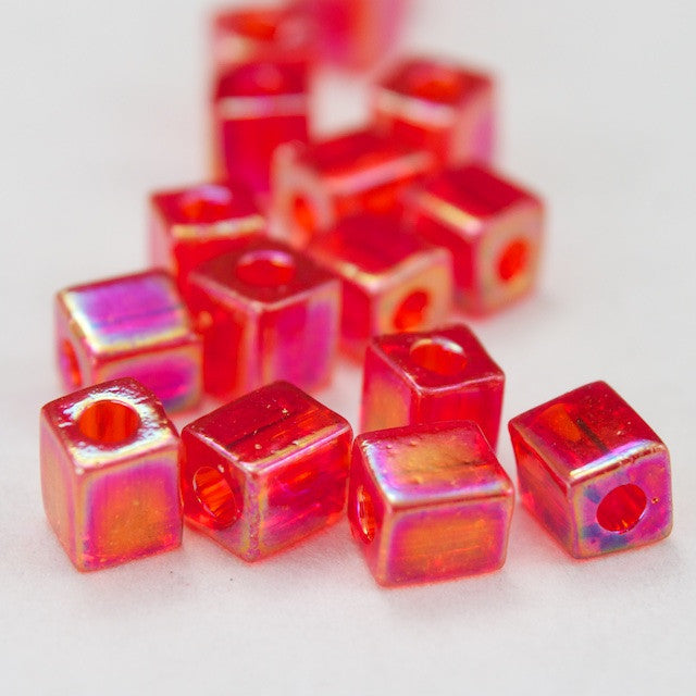 4mm transparent ruby AB glass cubes with 1.5mm hole.