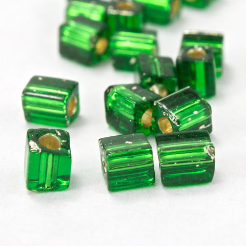 4mm silver lined medium green glass cubes with 1.5mm hole.