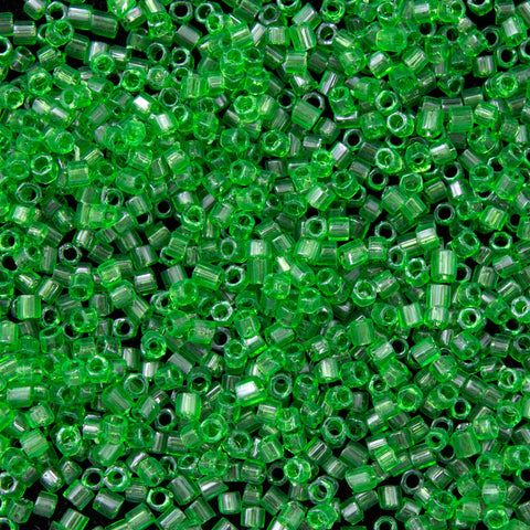 1mm x 1.4mm size 15/0 transparent emerald hex seed bead.