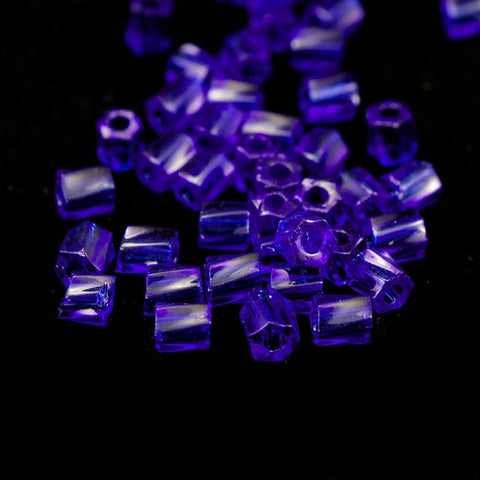 2.2mm size 10/0 transparent cobalt twist hex seed bead.