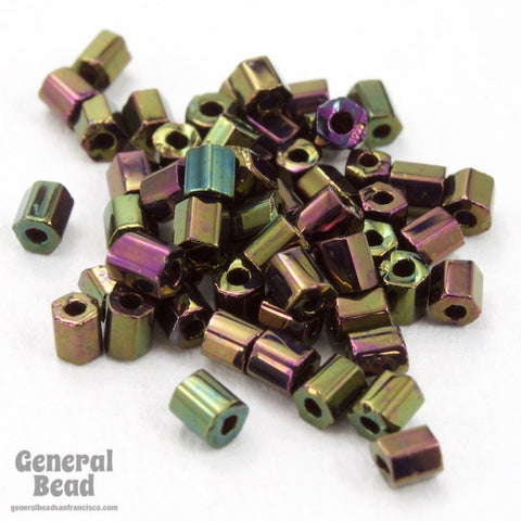 Size 11/0 metallic purple iris 2 cut hex seed bead.