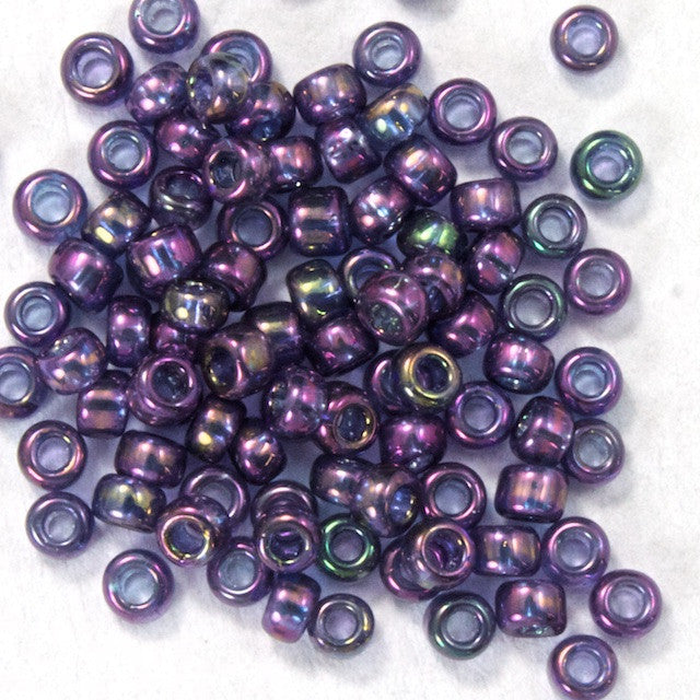 1.5mm 15/0 gold luster dark lilac seed bead.
