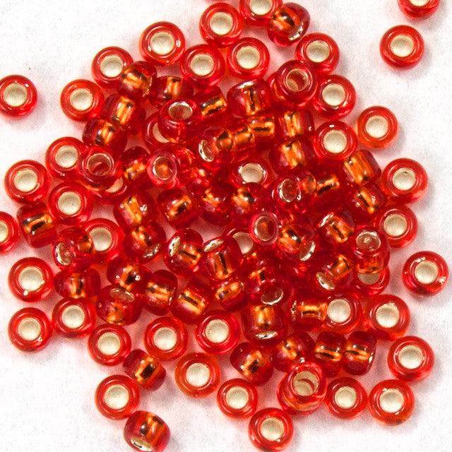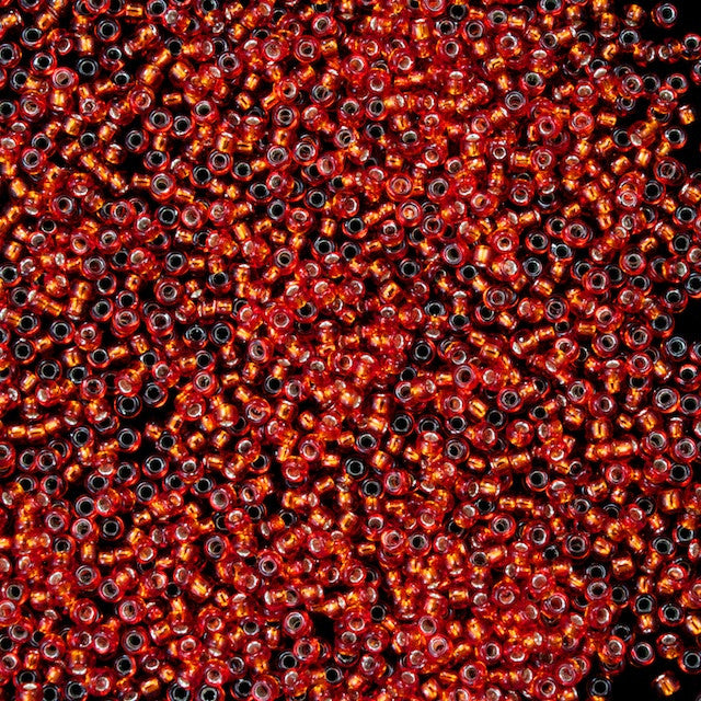 1.5mm 15/0 silver lined dark orange seed bead.