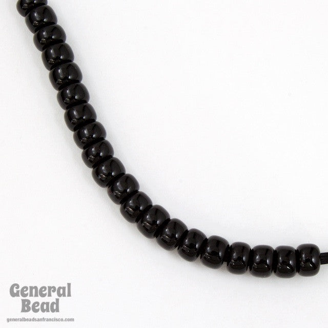 Size 3/0 (5mm) opaque black "E" seed beads with 1.5mm hole.