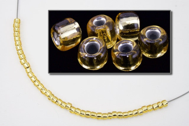6/0 (3.5mm) silver lined gold seed bead with .5mm hole.
