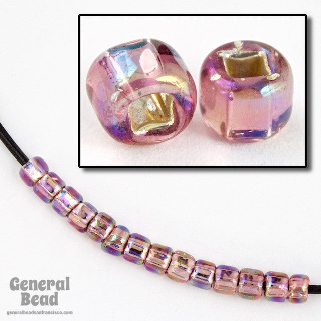 6/0 silver lined light amethyst seed bead with iridescent sheen.