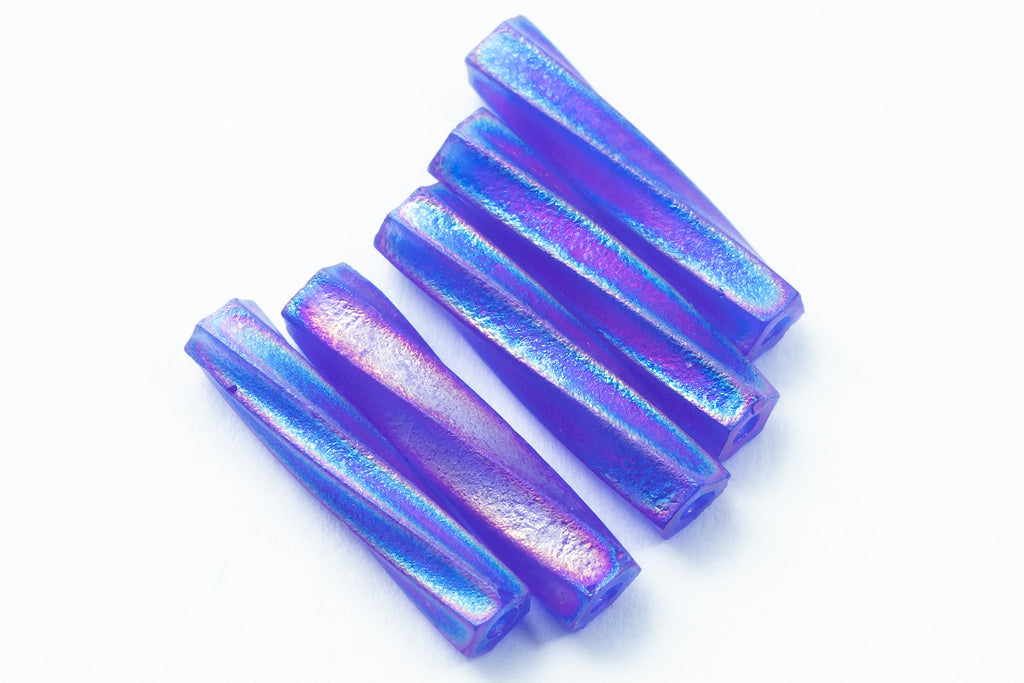 Size 2 twisted bugle in matte cobalt aurora borealis.