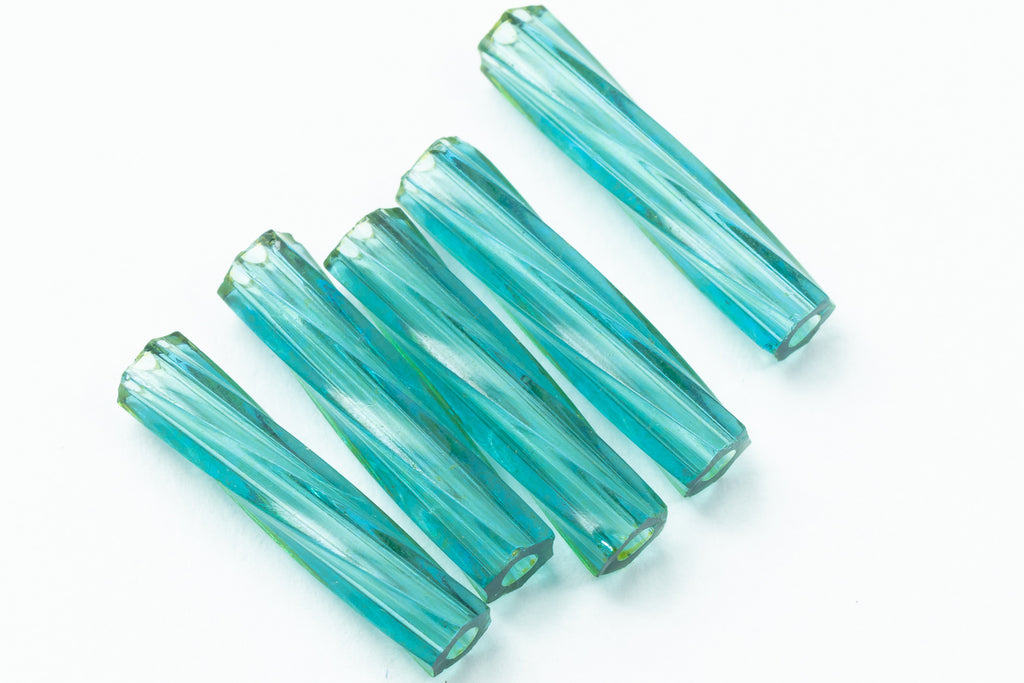 Size 4 twisted bugle in dyed transparent seafoam.