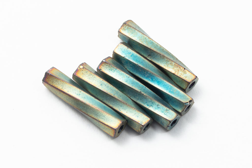 Size 4 twisted bugle in matte metallic patina iris.