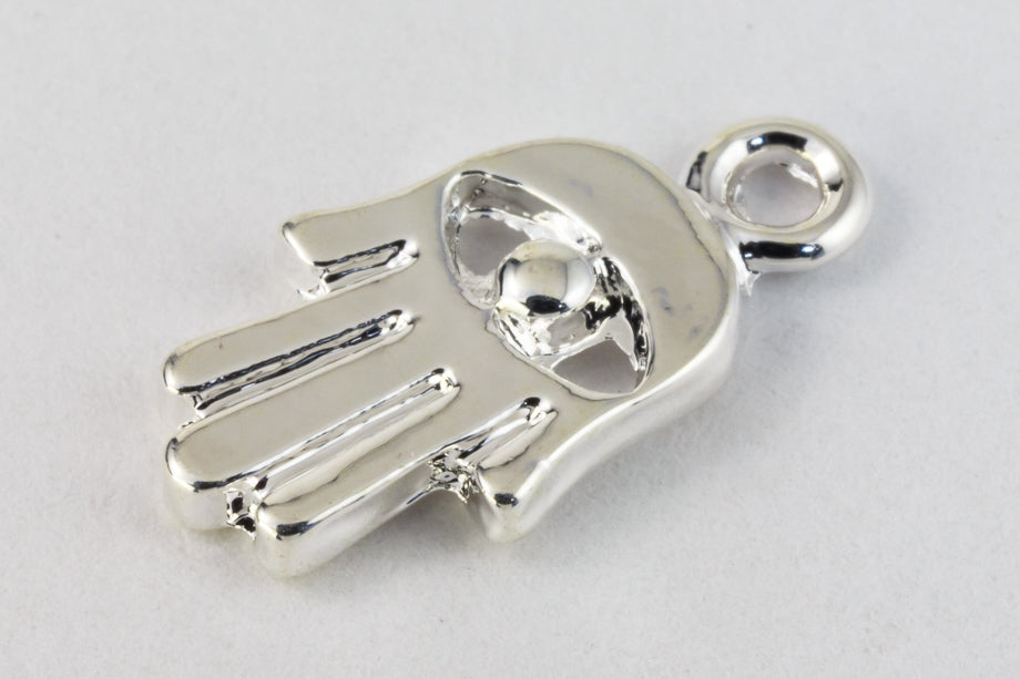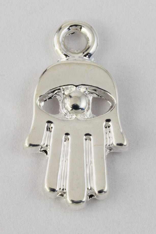 15.25mm x 8mm simple Hamsa with open eye. 1.75 to 1.4mm thick with 2mm loop.