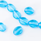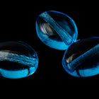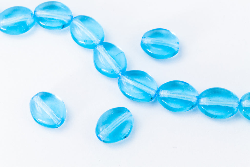6mm x 8mm transparent aqua flat oval bead with lengthwise hole.