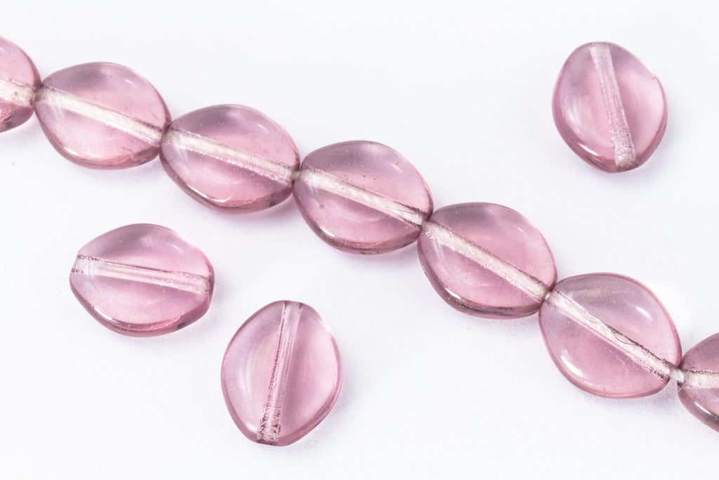 8mm x 10mm transparent light amethyst flat oval bead with lengthwise hole.