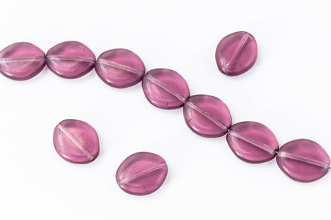10mm x 12mm transparent amethyst flat oval bead with lengthwise hole.
