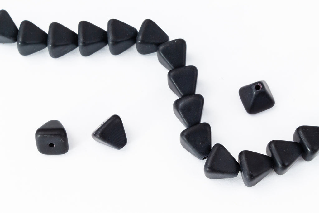 8mm x 10mm matte black glass pyramid bead with vertical hole.