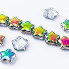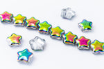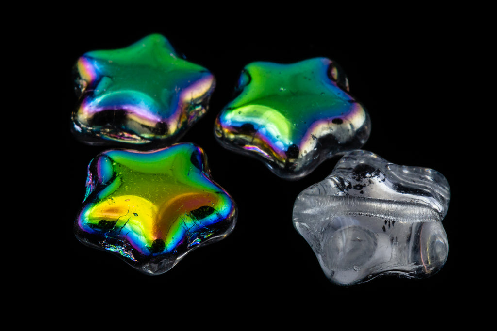8mm crystal clear pressed glass five point star bead with Vitrail Medium coating on one side.