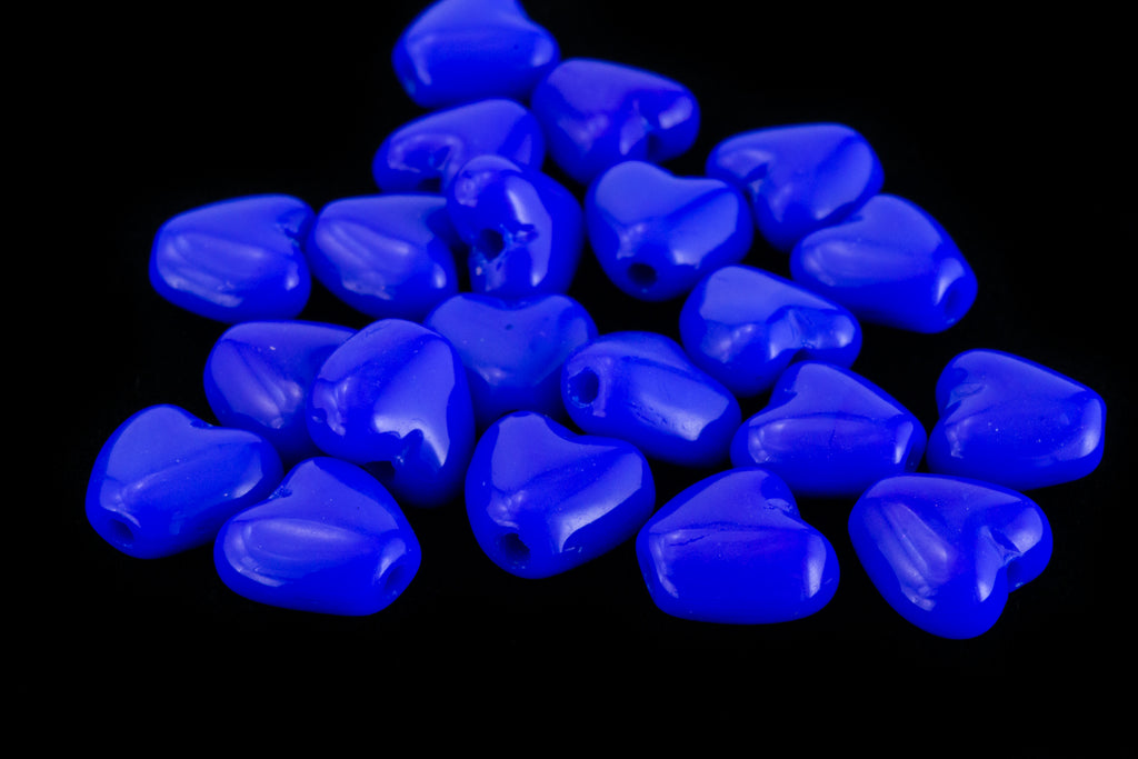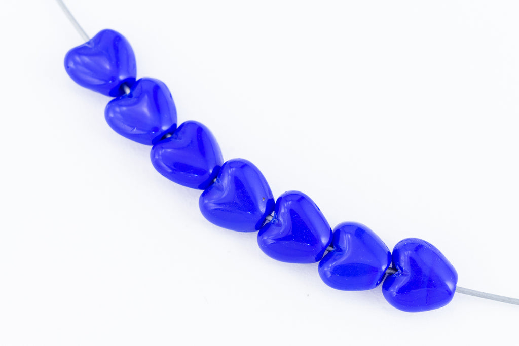 6mm opaque cobalt heart with vertical hole.Current manufacture from the Czech Republic.25 pieces per package.