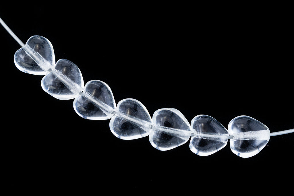 6mm transparent crystal heart with vertical hole.Current manufacture from the Czech Republic.25 or 600 pieces per package.