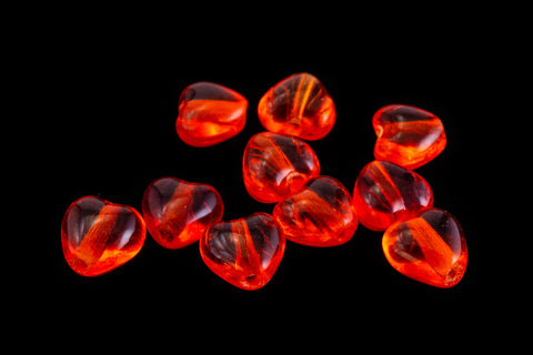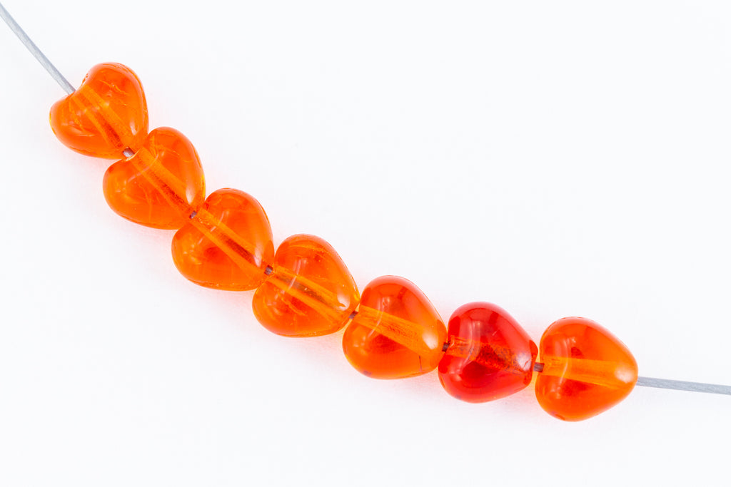 6mm transparent orange heart with vertical hole.Current manufacture from the Czech Republic.25 pieces per package.