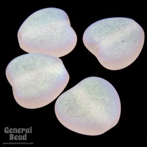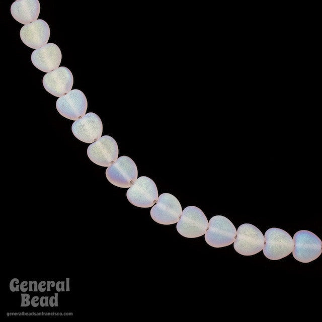 8mm matte crystal heart bead with iridescent sheen and vertical hole.