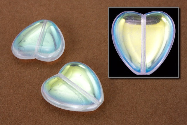 24.02mm x 22.63mm transparent iridescent crystal heart with vertical hole.