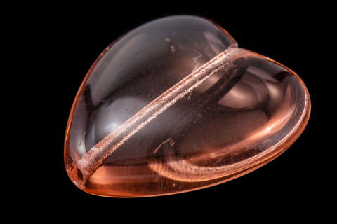 24.02mm x 22.63mm transparent rose heart with vertical hole.Current manufacture from the Czech Republic.Sold individually or 12 pieces per package.