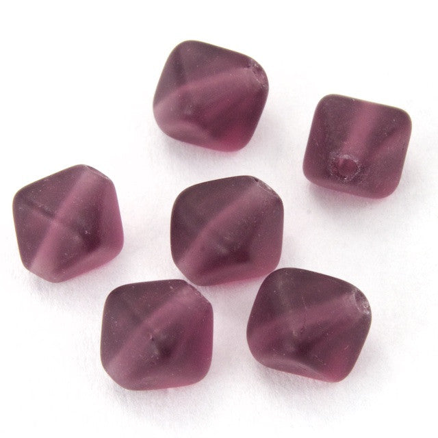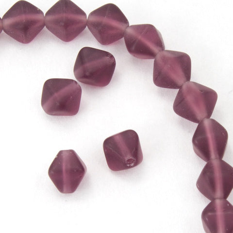 6mm smooth glass bicone bead in transparent matte amethyst. Standard hole.