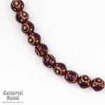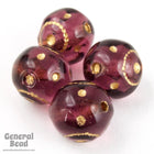 8mm transparent amethyst round bead decorated with gold dots and circles.