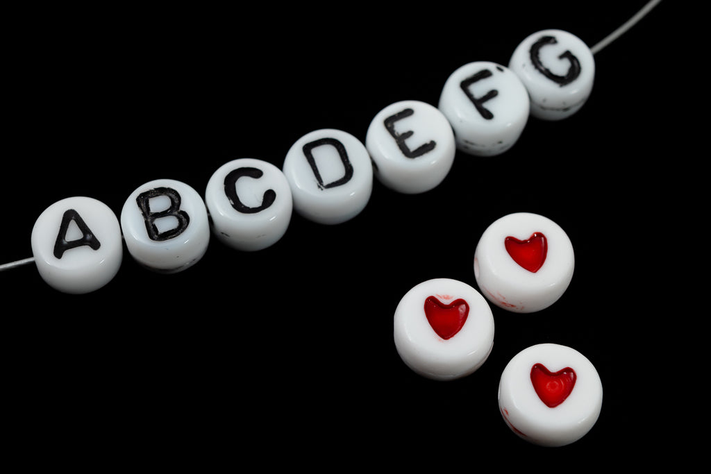 6mm white plastic "baby" beads with red heart on both sides and 1mm sideways hole.
