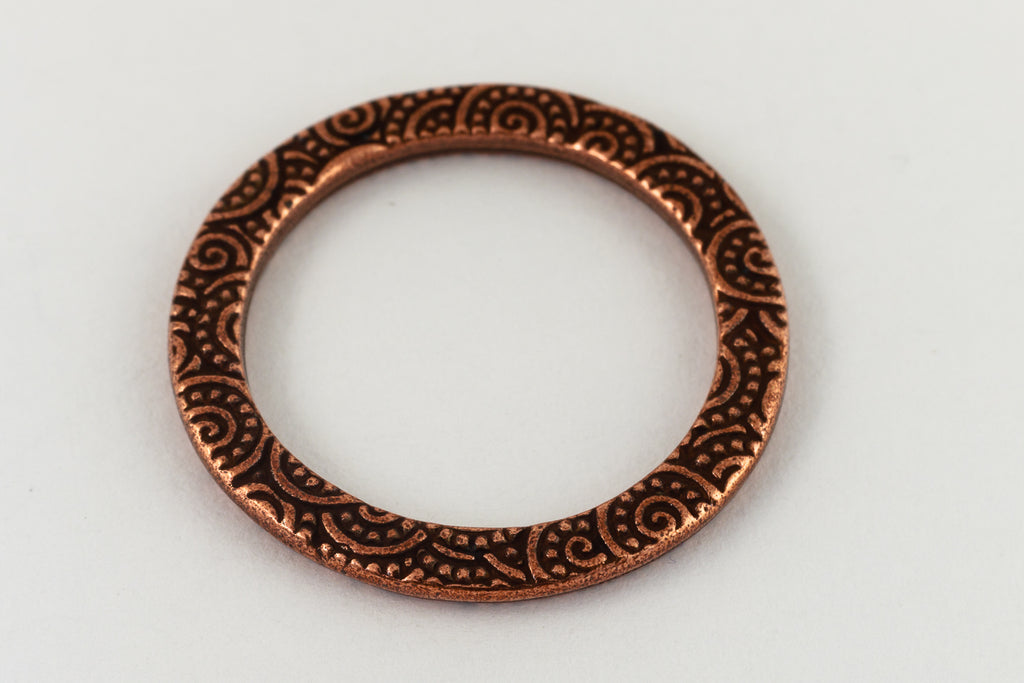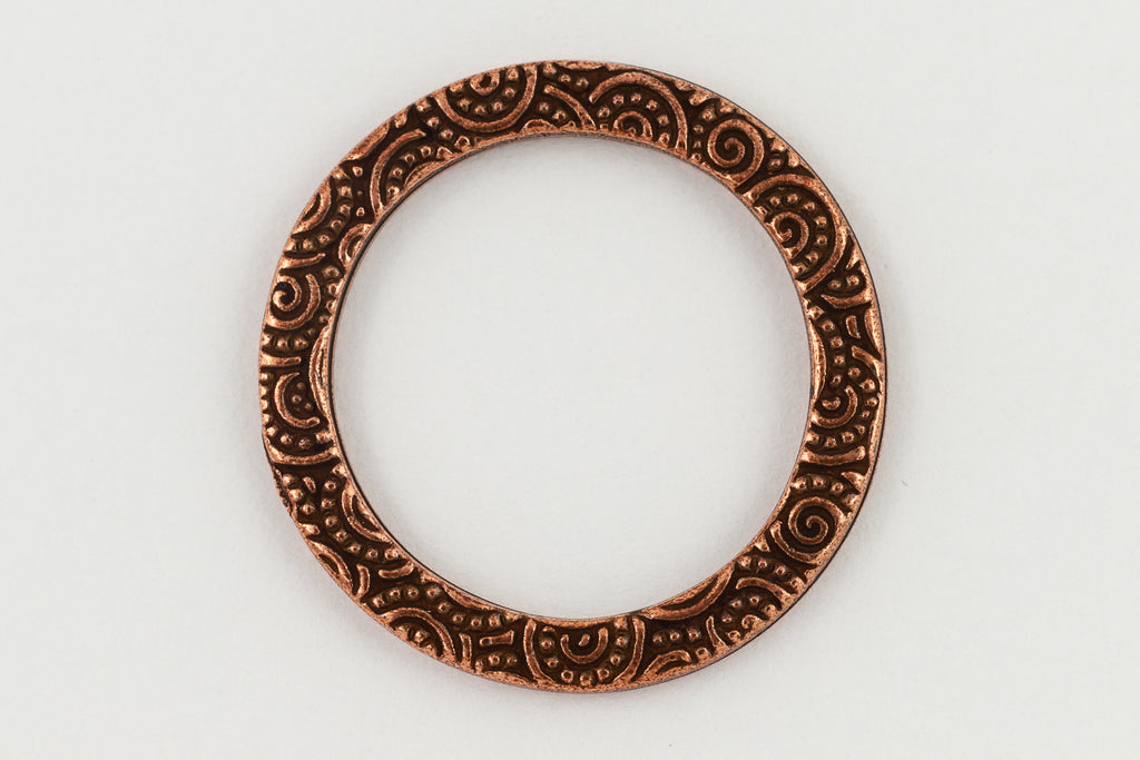 24.7mm antique copper ring link with spiral detail.