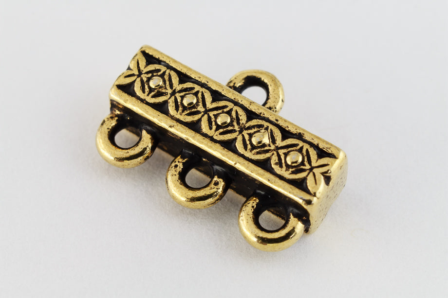 15.1mm x 10mm antique gold end bar with Art Deco style rose pattern.