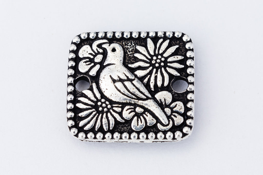 13mm x 14.9mm antique silver "Paloma" link with 1.5mm hole at each end.