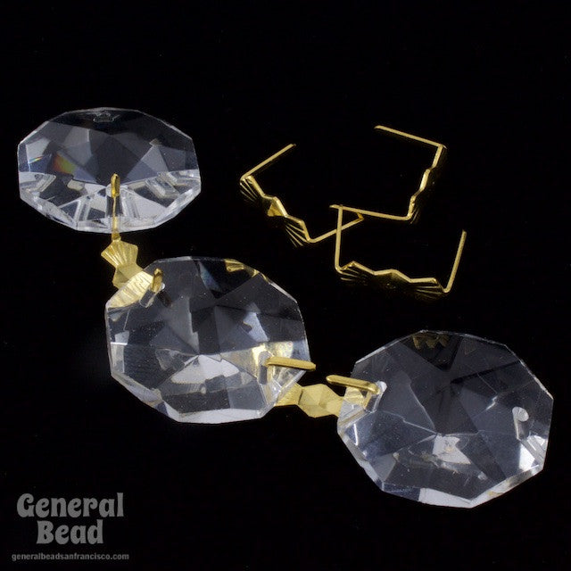 Gold tone bow tie or papillon clip for connecting chandelier prisms.