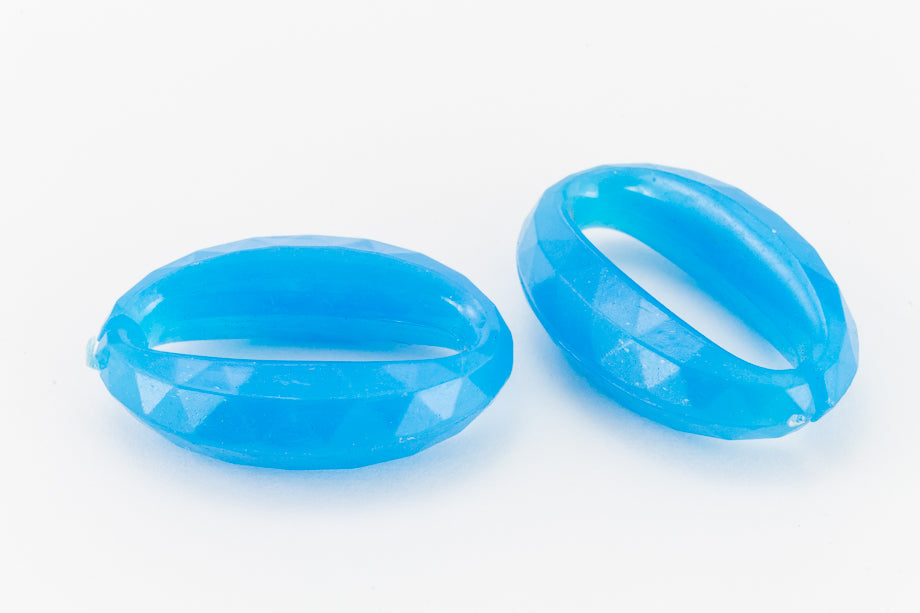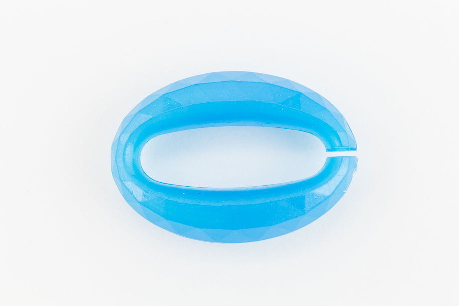 20mm x 14mm x 5mm opaque bright blue faceted Lucite oval link.