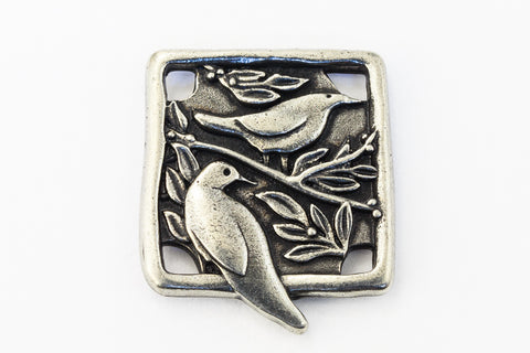 21mm x 18.5mm antique pewter square link with detail of birds and leafy branches.