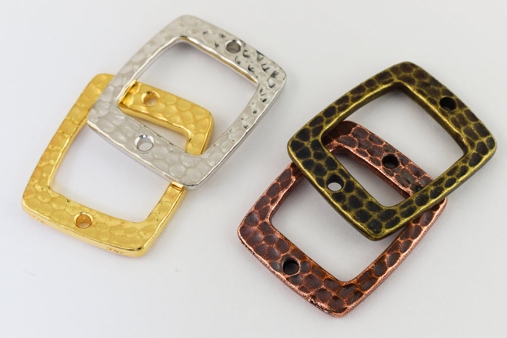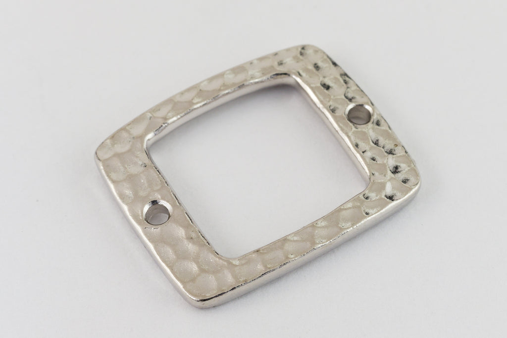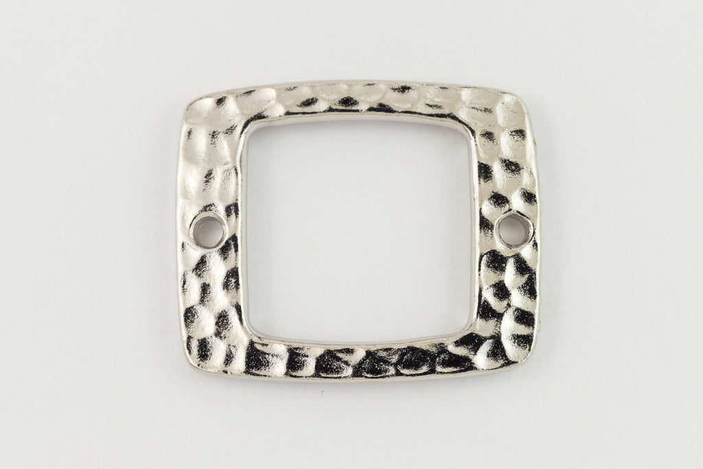 21.4mm x 17.4mm rhodium open rectangle with hammered texture and 1.5mm hole on either side.