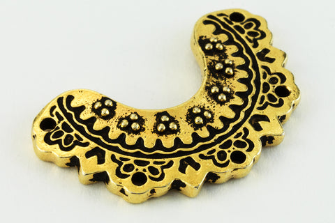 14.7mm x 23.2mm antique gold decorative crescent shape link with five holes.