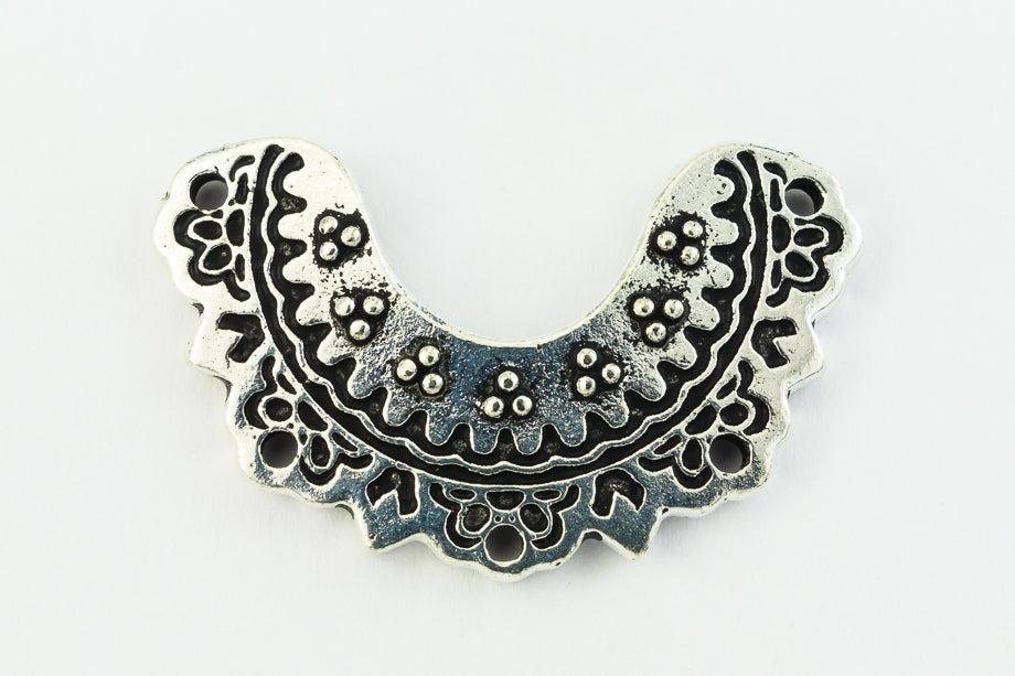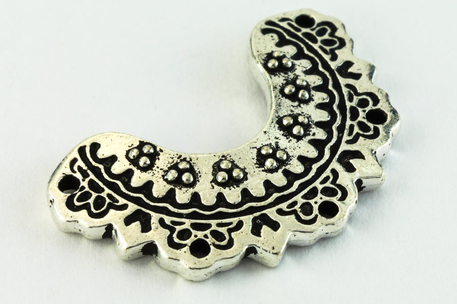 14.7mm x 23.2mm antique silver decorative crescent shape link with five holes.