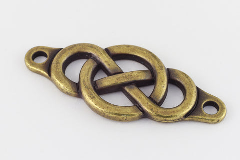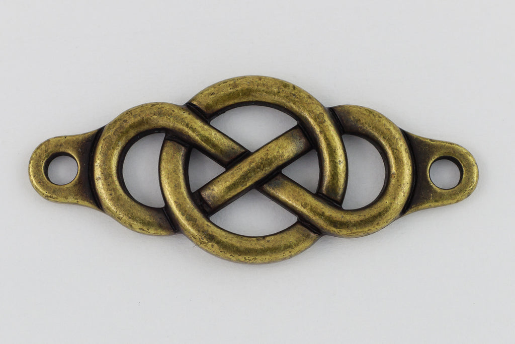 14.8mm x 35.1mm antique brass infinity knot centerpiece with 2.5mm hole at each end.