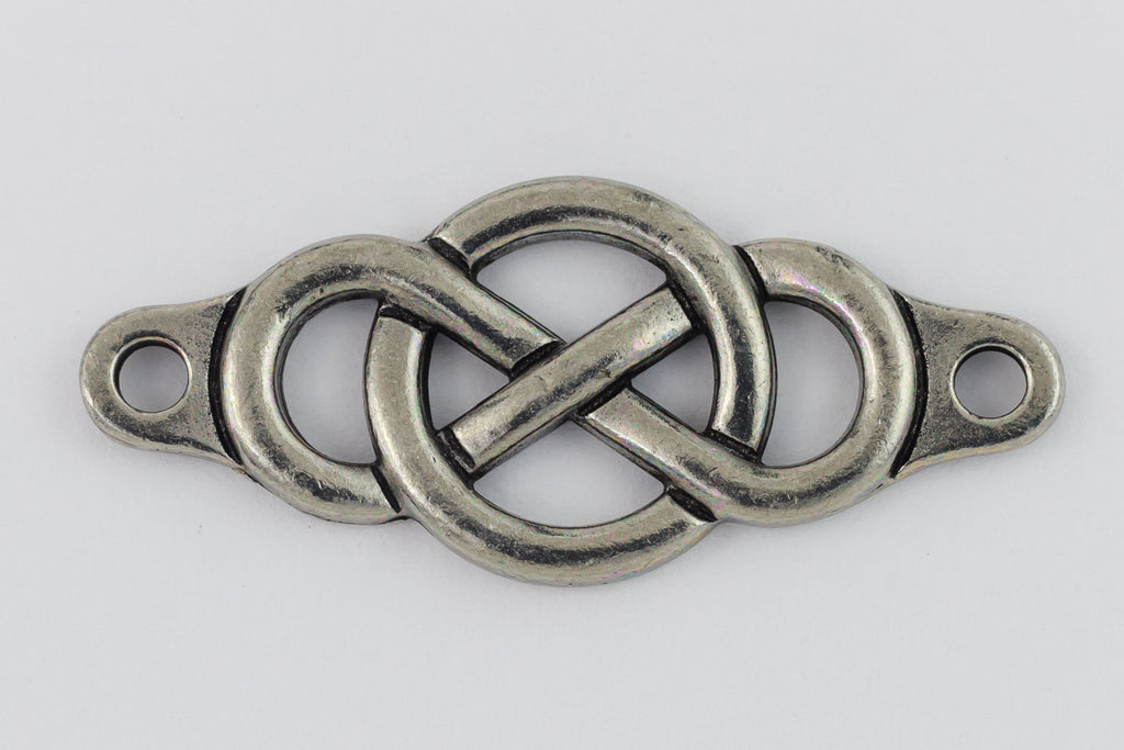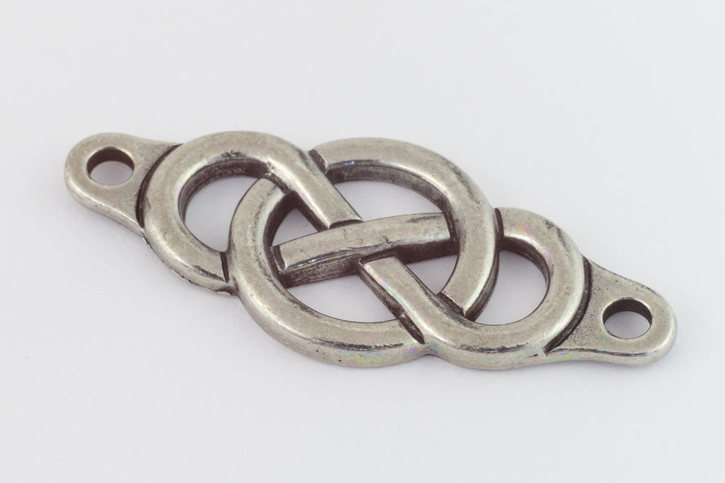 14.8mm x 35.1mm antique pewter infinity knot centerpiece with 2.5mm hole at each end.