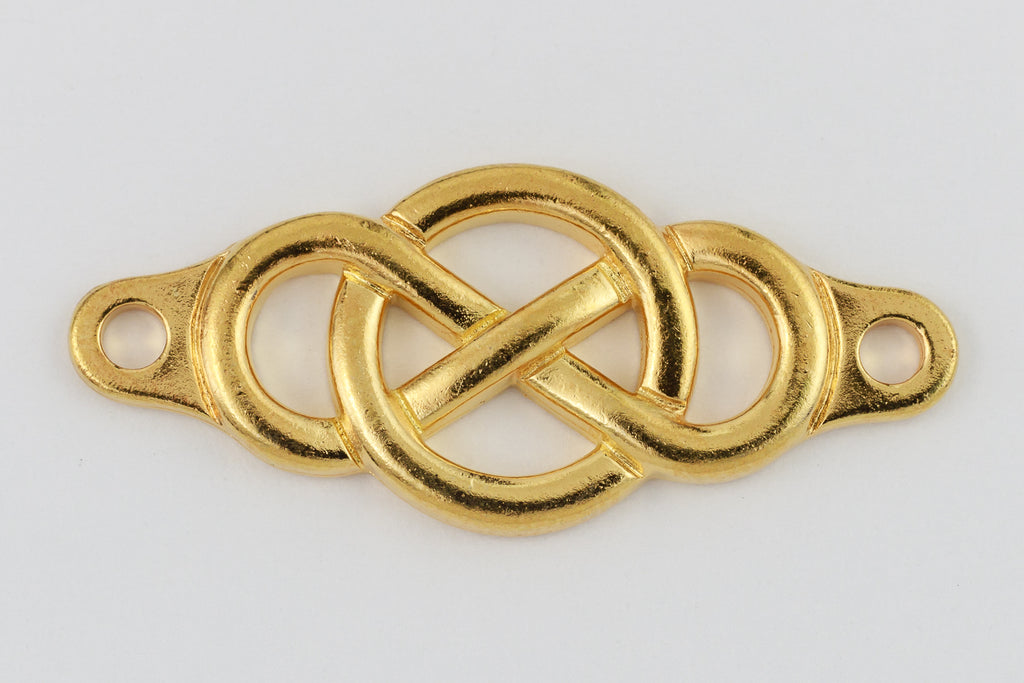 14.8mm x 35.1mm bright gold infinity knot centerpiece with 2.5mm hole at each end.