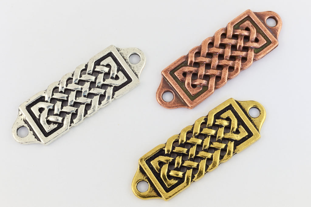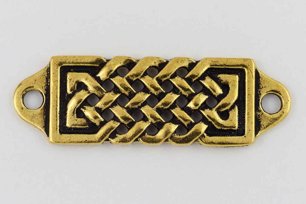 11.8mm x 36.5mm antique gold Celtic knot centerpiece with 2.5mm hole at each end.