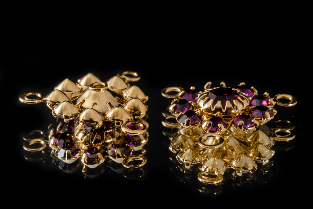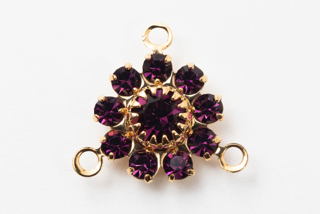 Swarovski Rhinestone Amethyst/Gold 3 Loop Flower Connector #RTD076