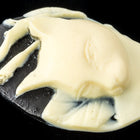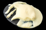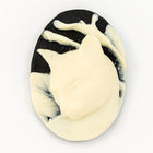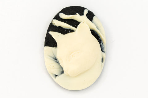 18mm x 25mm Lucite oval cameo with ivory detailed cat face and black background.