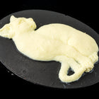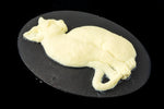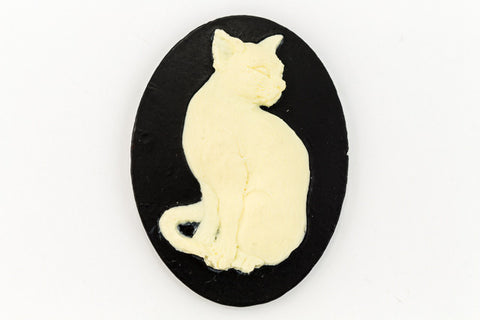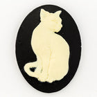 30mm x 40mm Lucite oval cameo with ivory detailed sitting cat and black background.