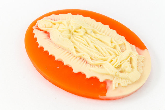 30mm x 40mm Ivory and Coral Our Lady of Guadalupe Cameo #FPA108
