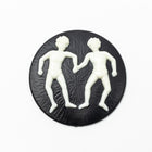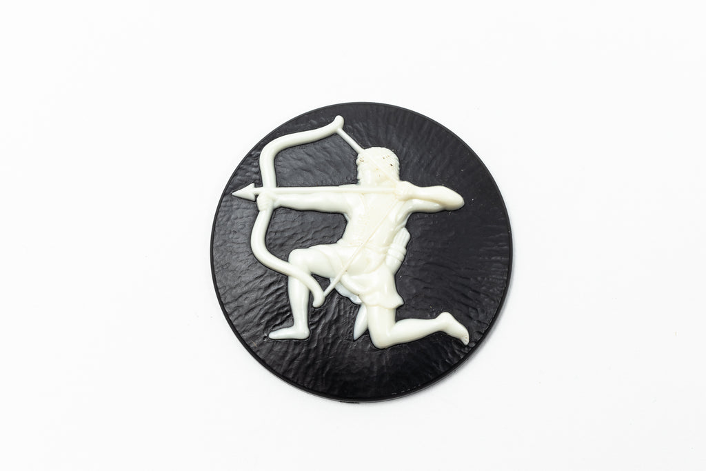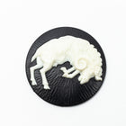 45mm round Lucite cameo with white detailed Aries symbol of a charging ram and black background.
