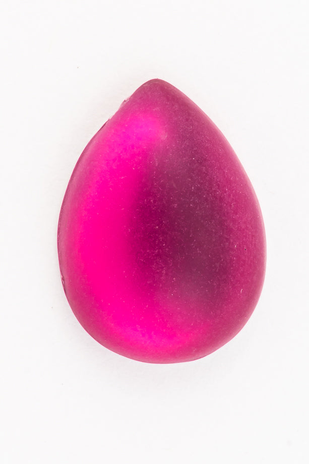 13mm x 18mm frosted fuchsia domed teardrop with flat foiled back.
