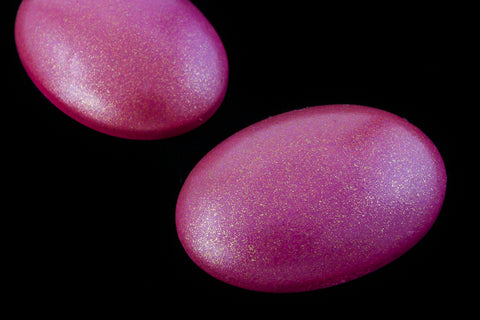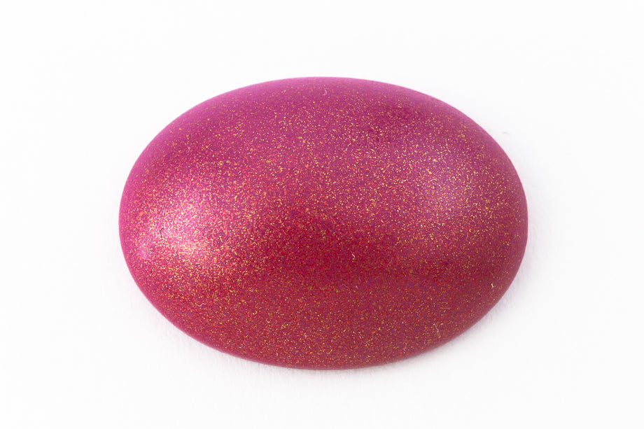 18mm x 25mm fuchsia domed oval dusted with matte gold.