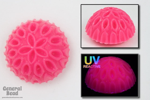 20mm hot pink high- domed flat back with dimensional floral pattern.
